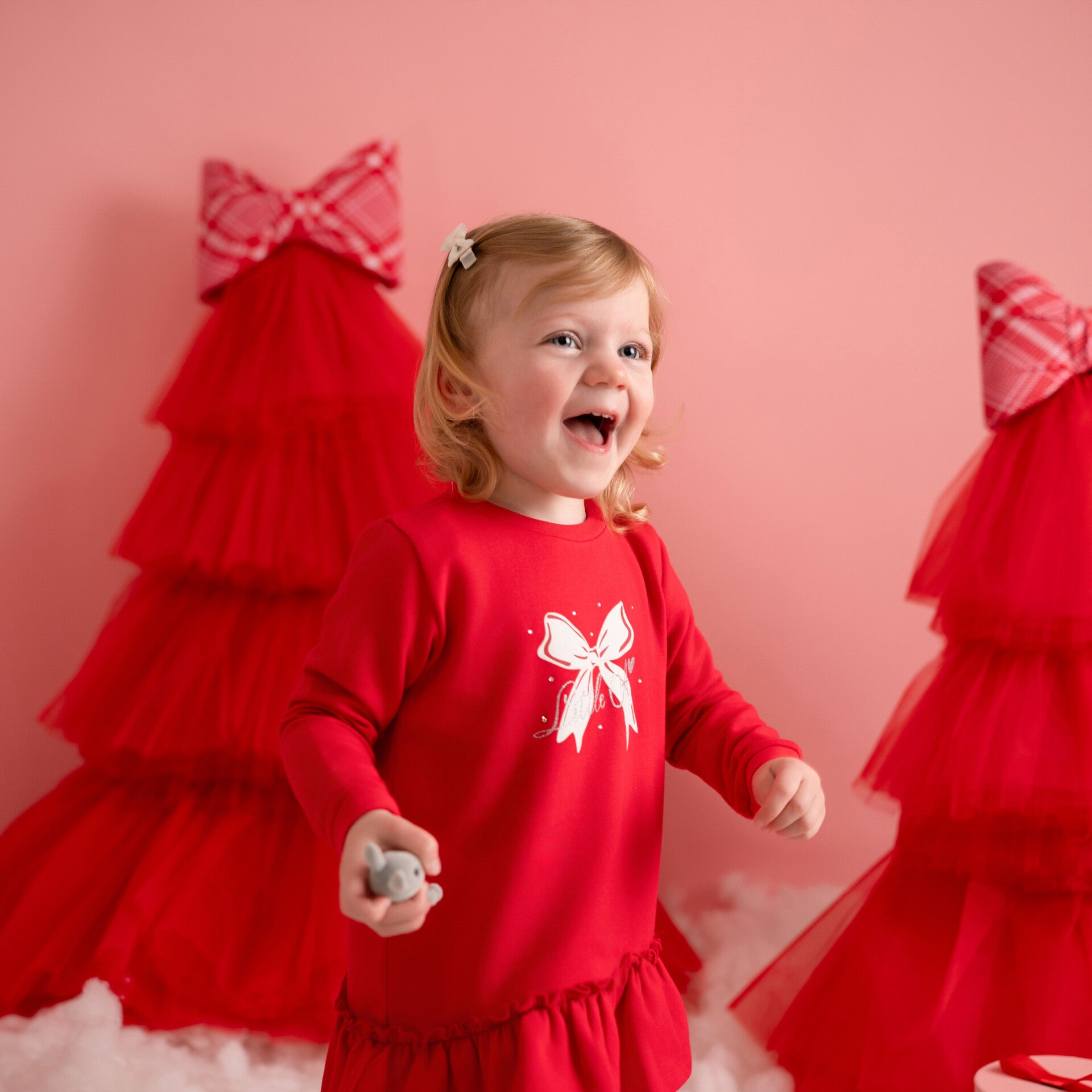 Little A - bow frill sweat dress vibrant red